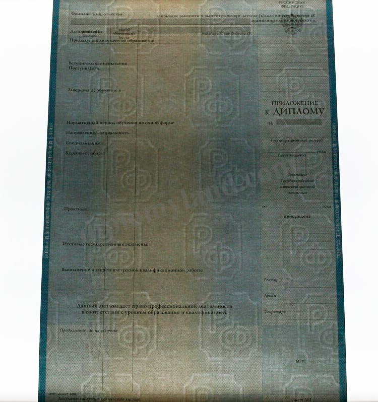 И, конечно, мы не забудем подготовить приложение с указанием всех вычитанных предметов, количества часов и полученных баллов и зачетов. Подготовленный нами диплом специалиста пройдет все возможные проверки, не вызвав подозрения.
